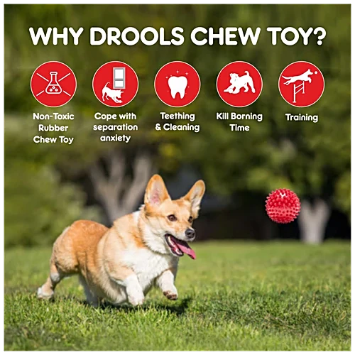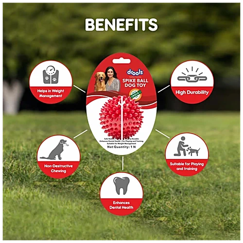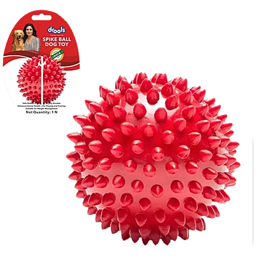 Spiked hard ball dog toy from Drools, 3-inch size, designed for dental stimulation and active play.